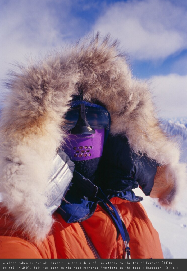 A photo taken by Kuriaki himself in the middle of the attack on the top of Foraker (4470m point) in 2007. Wolf fur sewn on the hood prevents frostbite on the face © Masatoshi Kuriaki