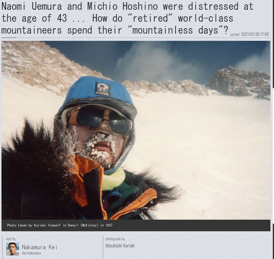 Masatoshi Kuriaki (48), the youngest mountaineer in history to climb Denali (6190m, Alaska, USA) in winter, has announced his de facto “retirement.” The decision to quit the mountain was the first distress in my life in 2016. Climbing Alaska in winter, which I translated as “a ridiculous thing” -why did Kuriaki bother to aim for “such a place” in the first place?